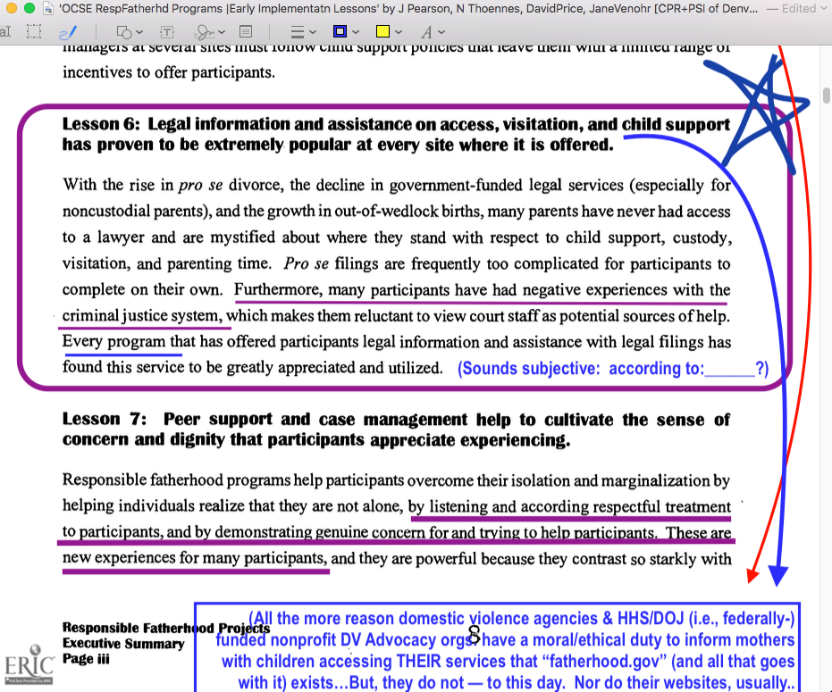 Belated Lessons from Baltimore’s and San Francisco’s CFCCs: How “Centers” Coordinating Planning and Advance PR with Private Trade Associations can Effectively Monopolize ANY Field of Practice and Bill the Public for both Startup, Capital Infrastructure, and Ongoing Operational Expenses. (Page Added 6/4/2017) » 1997 project, 2000 pub, HHS Contract | OCSE Responsible Fatherhd Programs | Early Implementatn Lessons (by Pearson, Thoennes (and Venohr and David Price) found at NRFC~~>Fatherhood.gov~~Imgs from large pdf ~ 2020Jan13 Mon PST@ 4.21.35 PM