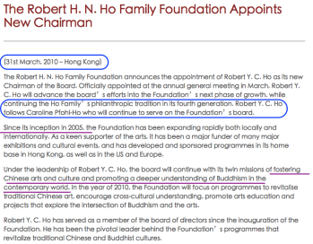 Robert H.N. Ho Family Foundation 2010 Press release (Appointing successor to Chairman Caroline Pfohl-Ho, gives a bit of foundation context. See also Hemera Fndtn (Bermuda-based, U.S. Registered agent via an LLC in Boulder, Colorado is Ms. Pfohl who seems now re-married. Hemera Foundation (previously unknown to me) listed as a top funder at Harvard University’s Center for the Developing Child, established in early 2000s.