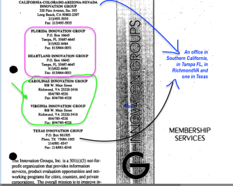 After looking more closely I see what ICMA’s acknowledged partner “Alliance for Innovation, Inc.” f/k/a The Innovation Groups” is doing, or at least how it’s been operating (since 1979, it says), although why ICMA would partner with such incompetence (speaking as to their tax returns), one wonders…. The Innovations Groups is plural because it has regional offices and at least one merger (for the region “California-Colorado-Nevada-Arizona”) in its 40-year-plus history. (See two images from their “founding documents” — link part of the California OAG link provided below). “The Innovation Groups, Inc.” is the prior name (one of several) for what is now “Alliance for Innovation, Inc.”