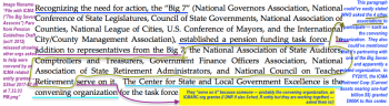 **Link to the Pension Guidelines (now almost five years old) shows why (see last para. in quote) those particular organizations helped draft — because the Big Seven asked them to! (next screenprint) as convened by a “Center for State and Local Government Excellence” which the guidelines don’t bother to mention is taking ICMA Retirement Corp funding and working with them: