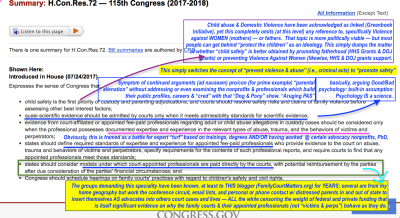 {Pls. Click Image to Enlarge if needed} HouseResolutn72@Congress’gov (115thCongress, Bill Summary), with my indignant annotations. Proofreading Correctn to Top Comment: “politically viable” should be “politically VOLATILE.” (my “word-o”|uncorrected it reverses my intended meaning!). The pink underline (mid-image) should also cover “perpetrators” on following line, to the end of that sentence.