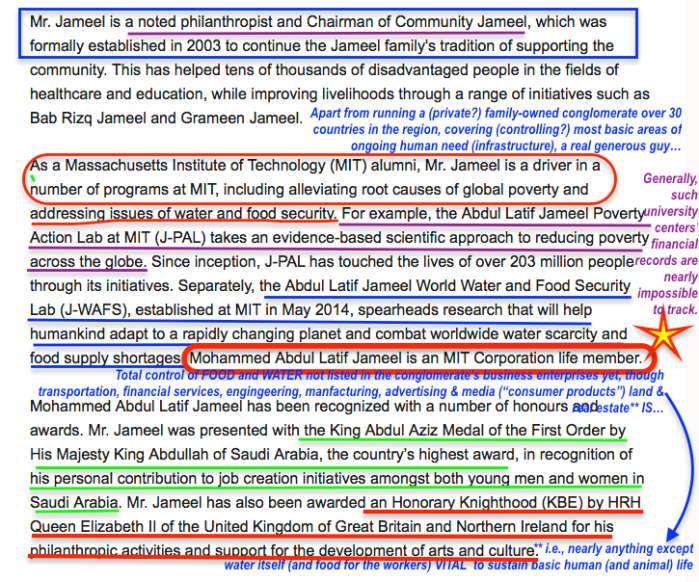 Corporations (usually starting with tax-exempt ones) Coordinate Campaigns named after a Cause, but We (the Public) should Coordinate to Get and STAY Cognizant of the Corporate(and Gov’t Entity) Contexts. [Page added March 28 2018] » Mohammed Abdul Latif Jameel (son, CEO of ALJ, MIT grad, + see HRH (in the UK), UAE titles) per MEI (Middle East Institute in DC, 1946ff) J-PAL (PovertyActionLab’org) @ 2018Mar29 Thu @4.