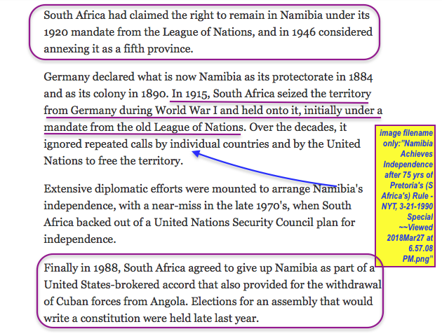 Corporations (usually starting with tax-exempt ones) Coordinate Campaigns named after a Cause, but We (the Public) should Coordinate to Get and STAY Cognizant of the Corporate(and Gov’t Entity) Contexts. [Page added March 28 2018] » Namibia Achieves Independence after 75 yrs of Pretoria’s (S Africa’s) Rule – NYT, 3-21-1990 Special ~~Viewed SShot 2018Mar27 @6.57PM
