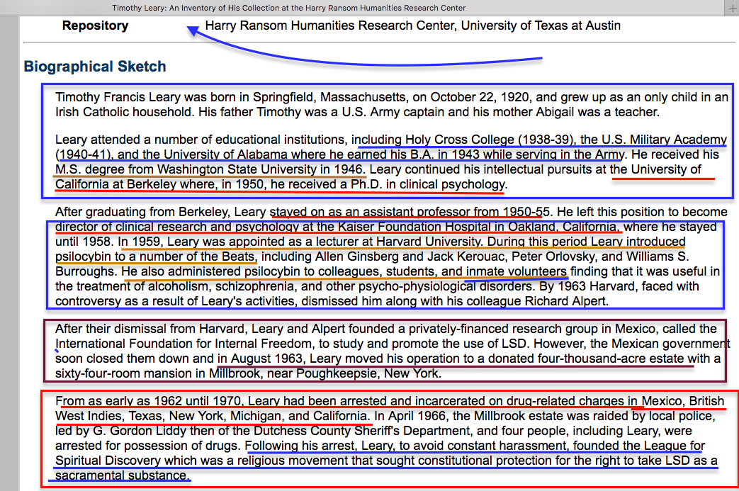 Timothy Leary from Harry Ransom Humanities Research Center (repository): Biographic sketch to go with listing of documents, #Image 1 of 2