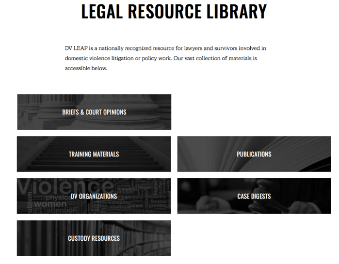 Not that the website says this, but “DVLEAP” stands for “Domestic Violence Legal Empowerment and Appeals.” Click for this web page.