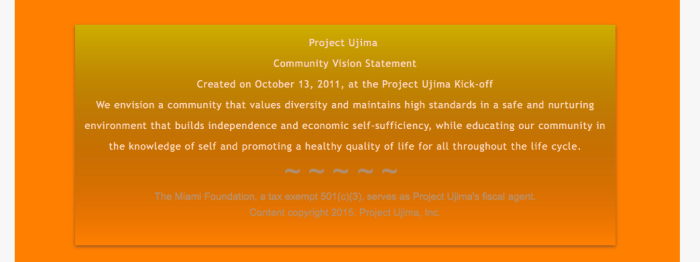Project Ujima Inc. (in OH?) sponsored by one tax-exempt thru a community (Miami) Fdtn as Fiscal Agent [that info barely visible]— 3 images).