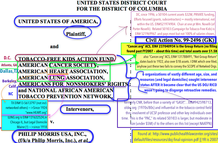 How and When Problem-Solving (make that ‘Collaborative Justice’) Courts were Institutionalized and other Consolidate/Coordinate/Standardize/PRIVATIZE Stories at Courts.CA.Gov [published Sep. 18, 2017] » USDOJ Civl Actn No 99-2496(GK) Amended Opinion (@2007) (FaceSheetOnly, MyAnnotatns focus on the 6 Intervenor Orgs) 2017Sep02@1.14PM