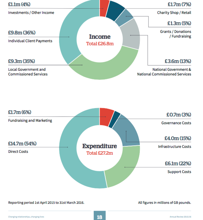 Pg. 18 (and the ONLY portrayal of finances) for Relate’s Annual Review 2015-2016 (cf. Annual Reports by companies in the US. NOT audited financial statements). Expressed in millions of Pounds GB.