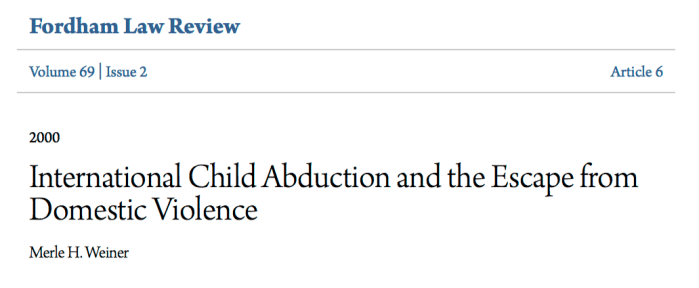 If Parental Kidnapping (Domestic or International) is ALWAYS Child Abuse, Where do the UN CRC and Hague Convention fit in? Obstructing the Escape from Domestic Violence, even within the USA? (D. Huntington then ℅ AFCC-related* Center for the Family In Transition, M.W. Agopian, N. Faulkner (1999), Merle H. Weiner (2000, Fordham) etc. [Written, Stayed “Pending” Jan. 2018, Released/Published only Sept. 2019]. » Screen Shot 2018-01-18 at 8.26.43 PM