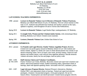 C.V. for Nancy KD Lemon from law.berkeley.edu
