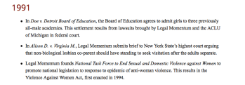 - [I believe I should review this again separately, but am below including two (only) images showing Legal Momentum’s support of the VAWA act and pushing for its passage (1991, 1994) under the two showing the top and bottom of home page.]