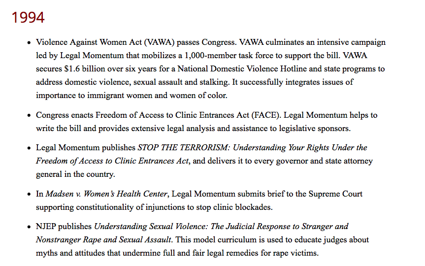 Consolidated Control of DV Advocacy by Feminist Leadership Refusing to Identify, by Name and Financing, The Opposition Entities. Subtitle: Personal Relevance to a Post-DV-Intervention, Unprosecuted, Child-Stealing Event by Ex-Batterer case in the SF Bay Area. [a PAGE, Publ. Feb. 2, 2018] » Legal Momentum Home pg + history (esp re VAWA) webshots ~Viewed 2018Feb2 FRI @8.43.29 PM