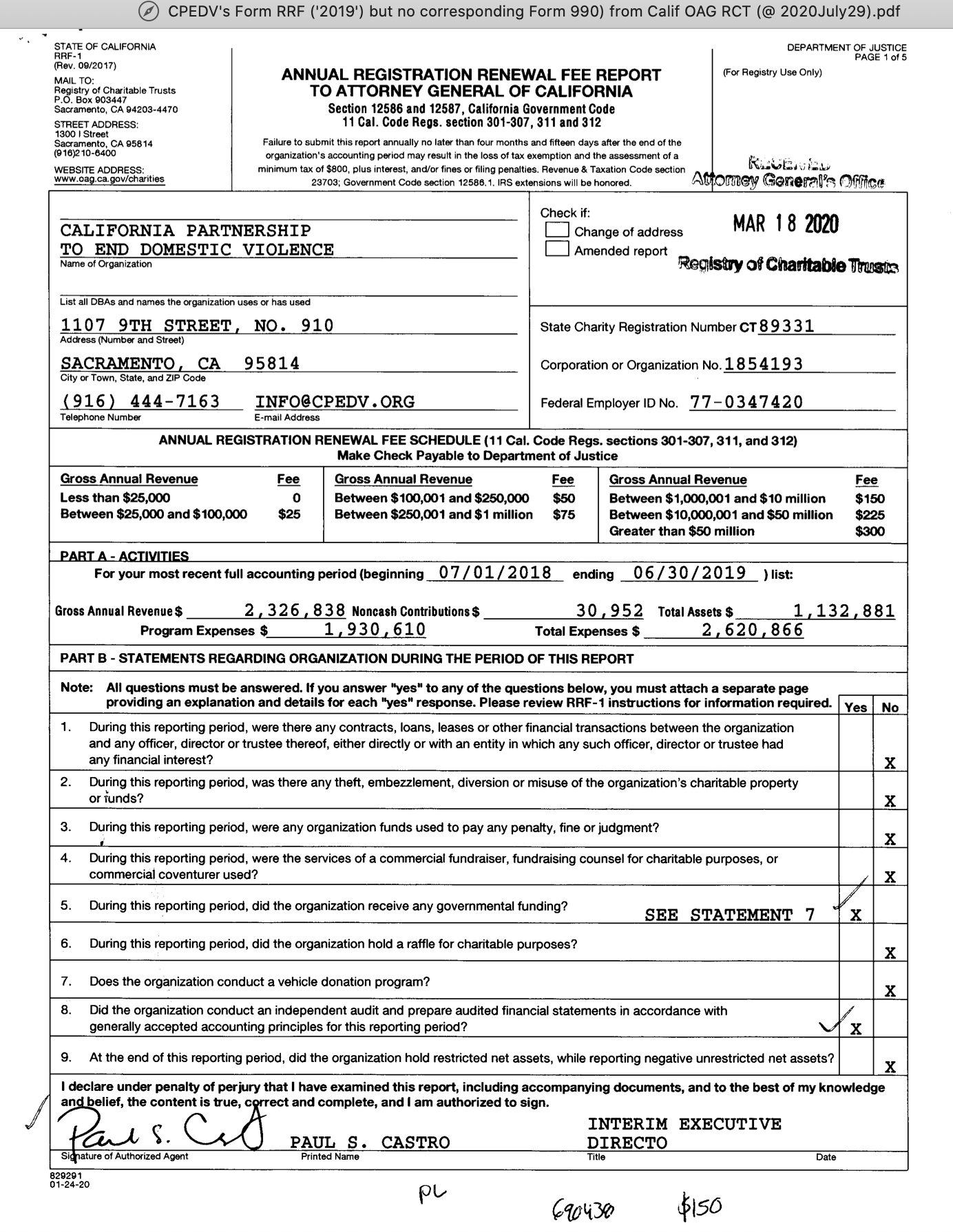 LGH Top Picks, Themes … and Why My Gravatar is a Blue Jay Taking Flight, a.k.a. ‘Front Page.’ (Publ. Jan. 27, 2018; Updated Sept. and Dec. 27, 2019–and July, 2020). » CPEDV Forms RRF (two most recent) and top of Form 990, FY2017 showing Year Founded ‘2004’ (@ 2020July29) ~ 3