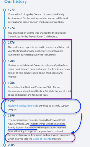 This ENDs, page section (probably about 50% of entire page) on “PREVENT CHILD ABUSE AMERICA” and its programming. I think you get the general idea!