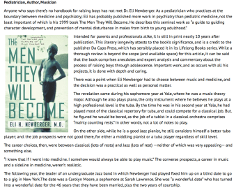 During their careers, Eli and Carolyn Newberger have collaborated on both music and medicine. The two disciplines have been such an integral part of their individual lives, and are so intertwined that it is difficult to choose one starting point. But, if nothing else this article is about choice, so the writer might as well join the fray.