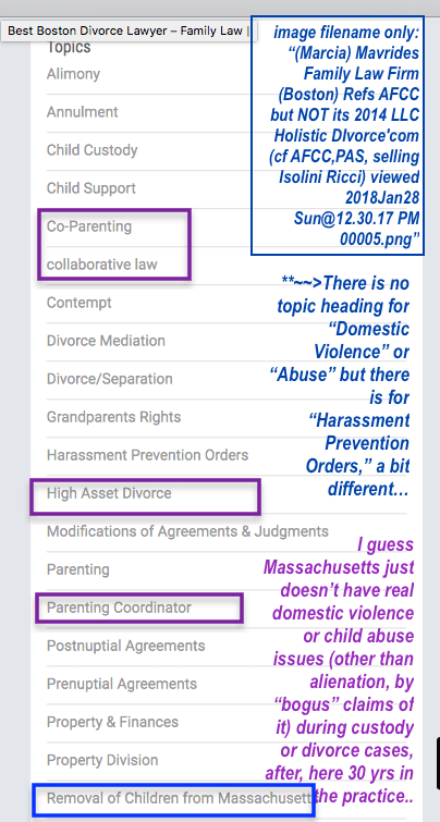 LGH Top Picks, Themes … and Why My Gravatar is a Blue Jay Taking Flight, a.k.a. ‘Front Page.’ (Publ. Jan. 27, 2018; Updated Sept. and Dec. 27, 2019–and July, 2020). » (Marcia) Mavrides Family Law Firm (Boston) Refs AFCC but NOT its 2014 LLC Holistic DIvorce’com (cf AFCC,PAS, selling Isolini Ricci) viewed 2018Jan28 Sun@12.30.17 PM 00005