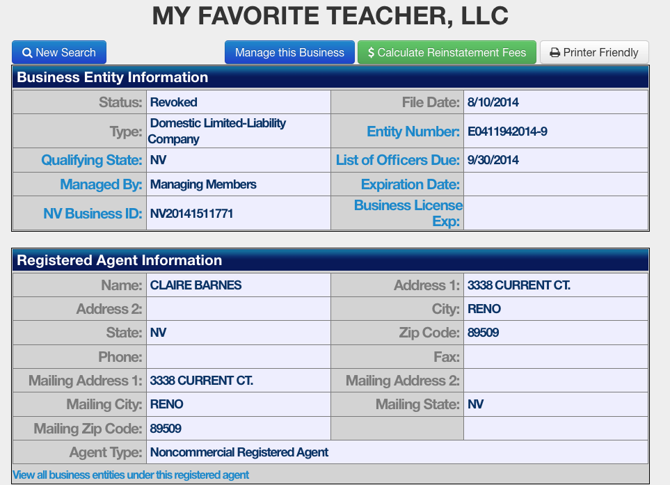 (Confirms that status-revoked (in Nevada) LLC is indeed associated with Ms. Barnes of Thorn Foundation, Kids’ Turn (SF, for 13 yrs so it’s said), International Commission of Couples and Family Relationships (British charity whose first US member didn’t come on board until 2014…) and “Relate,” not to mention Schapiro Thorn, Inc. law firm in SF..