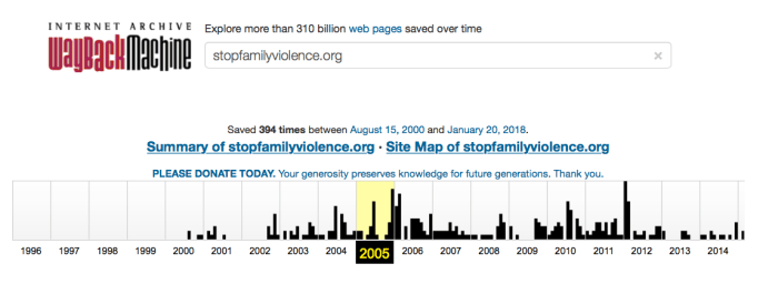LGH Top Picks, Themes … and Why My Gravatar is a Blue Jay Taking Flight, a.k.a. ‘Front Page.’ (Publ. Jan. 27, 2018; Updated Sept. and Dec. 27, 2019–and July, 2020). » StopFamilyViolence (formerly SFVO’org, a TIDES project (ie not incorp) by 2006) 2000ff WayBack Machine cf DVLEAP DV Orgs ~~ taken 2018Jan27 Sat@3.10.03 PM