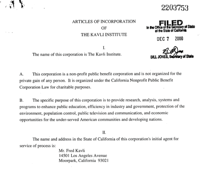 LGH Top Picks, Themes … and Why My Gravatar is a Blue Jay Taking Flight, a.k.a. ‘Front Page.’ (Publ. Jan. 27, 2018; Updated Sept. and Dec. 27, 2019–and July, 2020). » The Kavli Institute (CalEntity 2203753 existed 2000-2006 merger only) #1, 2000 Inc, #2 + 3 2003 Amended, Restate (3rd imge is signatures only) Kavli, Auston, Freeman~~019Oct14 MON PST @2.52.26 PM