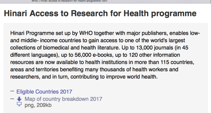 HINARI PROGRAMME (2001-02ff, Six Publishers involved) by WHO — found+accessed thru WoltersKluwer’com