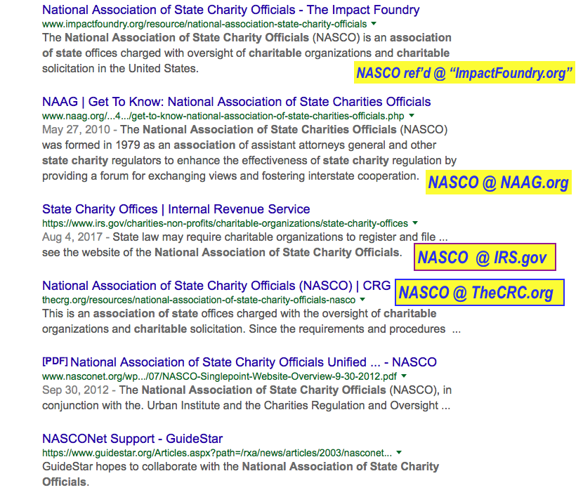 State-by-State Charity Lookup Links (from SimpleCharityRegistration.com’s March 2017 WordPress post). [Published 11/11/2017]. » NASCO (written out) Google Search Results [SShot 2017Nov08 @2.20PM
