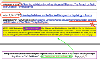 Find FamilyCourtMatters.org prior, related posts: two-image gallery. Find by dates or from within sticky post “Table of Contents 2017” either as pdfs (with active title links: best) or from that page linking to direct displays of those TOC’s as separate posts. Next quote (from my “Table of Contents 2017 continues themes from 2016…” contains a link to a pdf containing the images shown just below, but explains that’s a 37-pager. (Second click on blank page icon probably required to open).