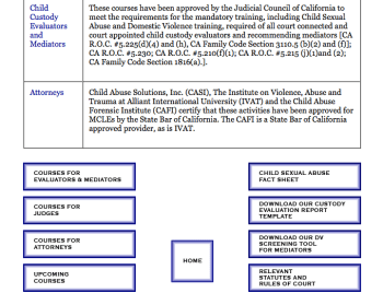 CAFI’s undeveloped website “links” show ONLY two — one for attorneys (DVLeap) and another for psychologists (“the Leadership Council)” and another page shows connections to California NOW 2002 Family Court Report (Helen Grieco, Rachel Allen). IF they read that, this entity knows about AFCC and the HHS fatherhood grants, as these came up in that report.