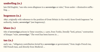 And, under “hegemony,” linked from the same “OE” search results for “sovereign,” (emphases added):
